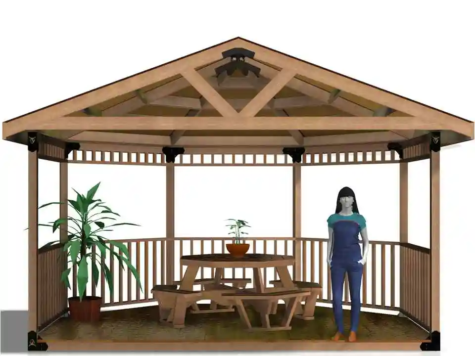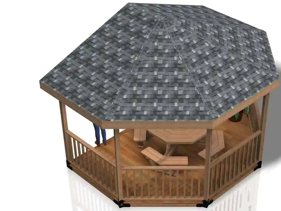 Explore Floating Deck, Solid Roofed Partial Octagon