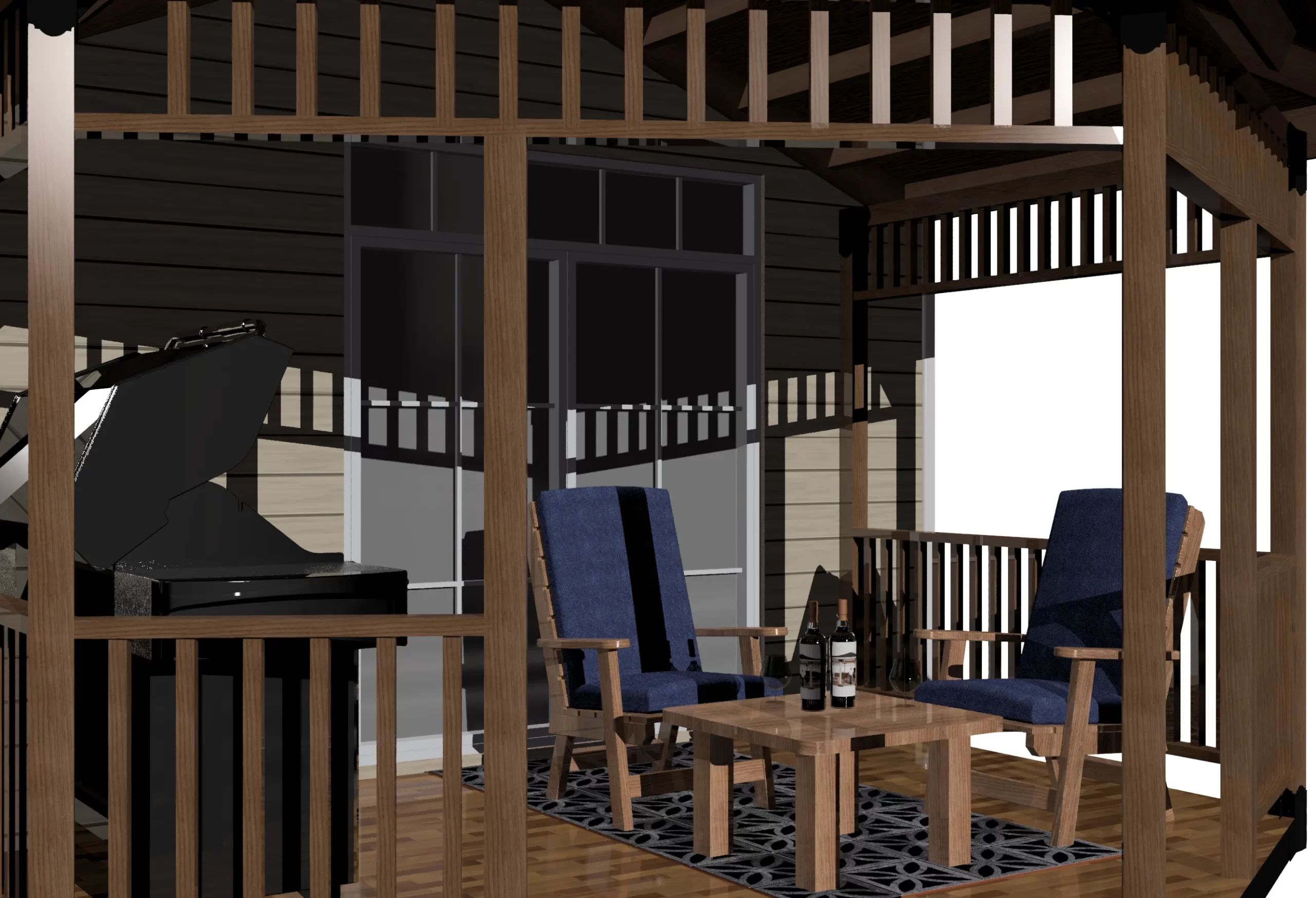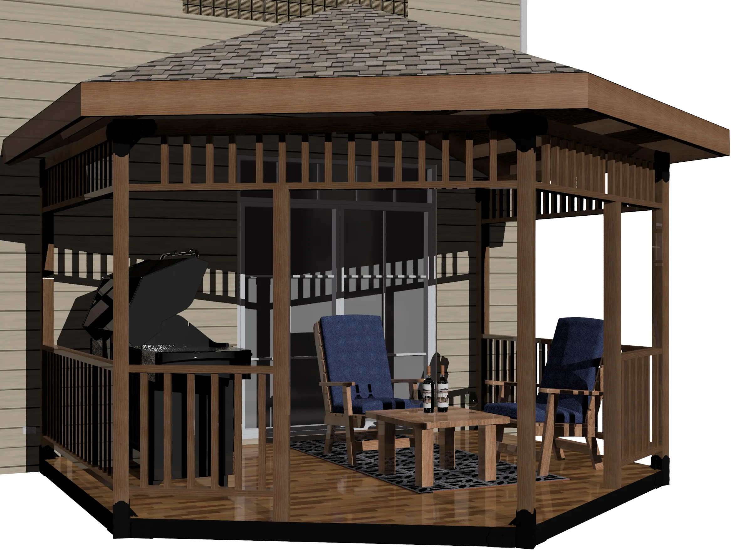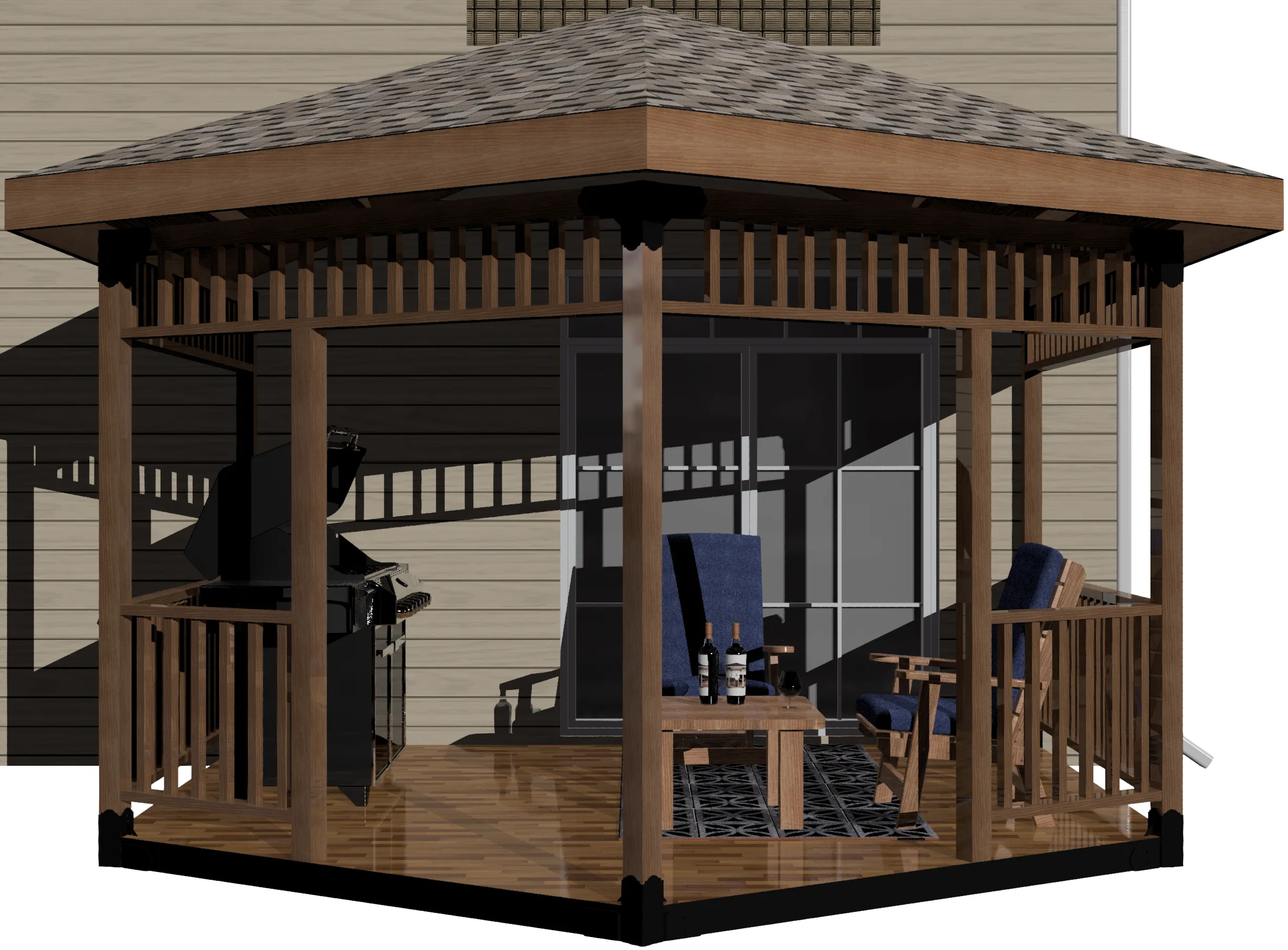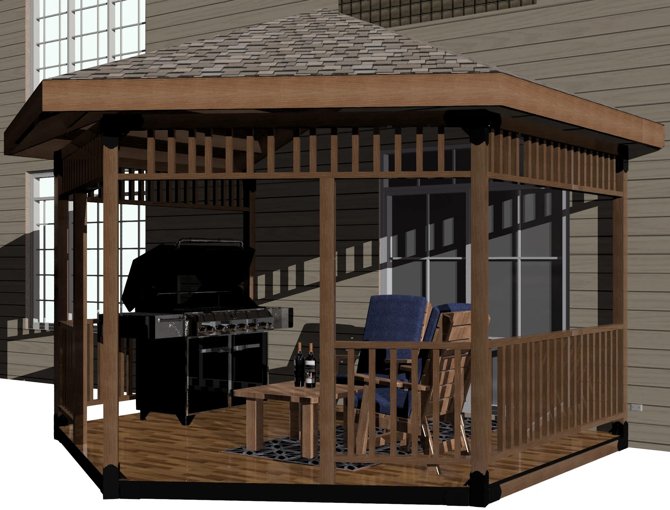 Explore Floating Deck, Wall Attached, Solid Roofed Partial Hexagon