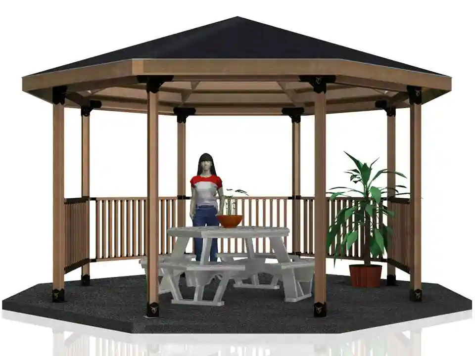 The one and only DIY-Smart design ever created to allow DIYers to easily build a grand solid roofed octagon outdoor living structure easily, fast, and for 1/4 the cost of contracted labor.