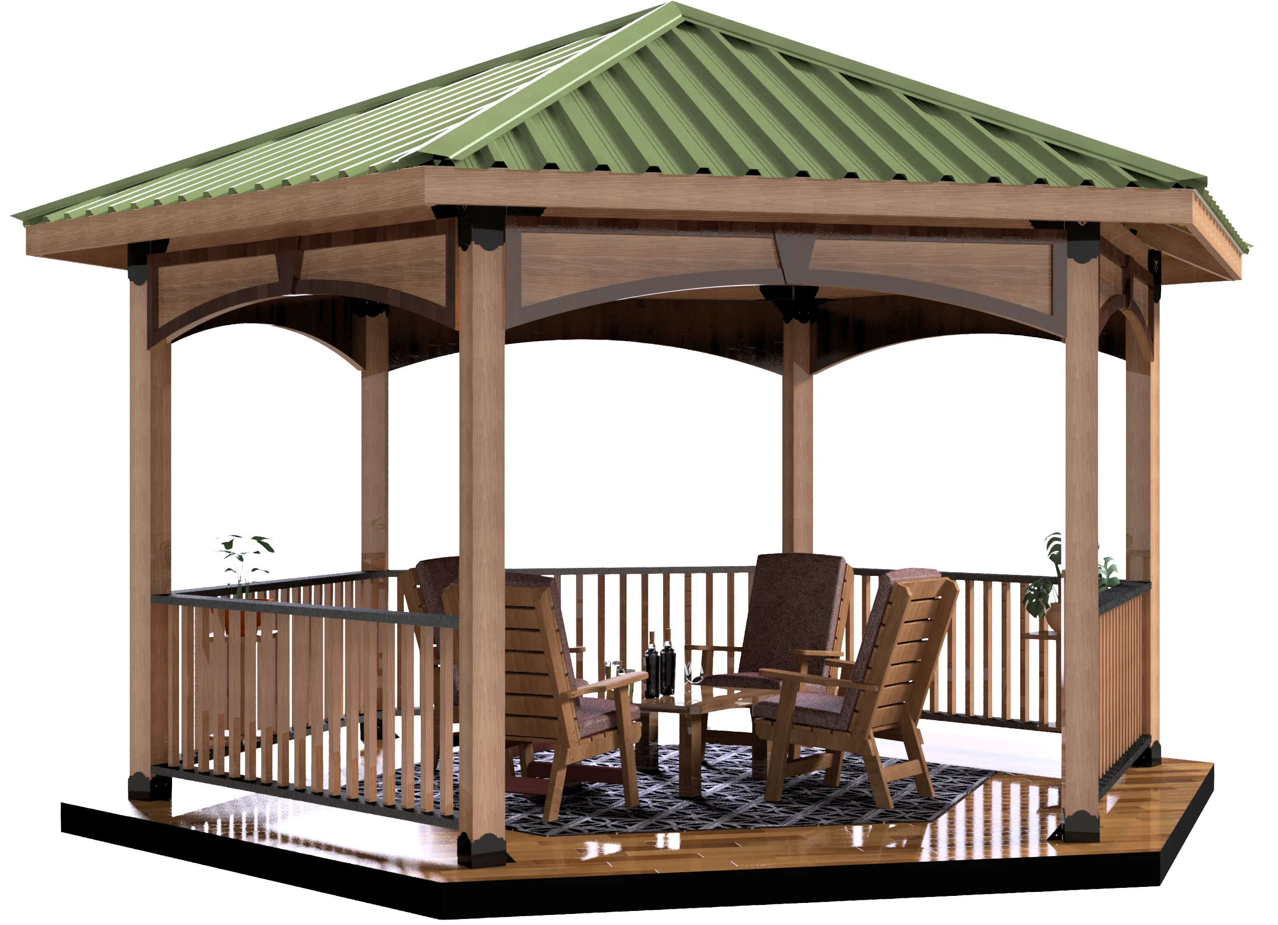 Explore Floating Deck, Solid Roofed Hexagon