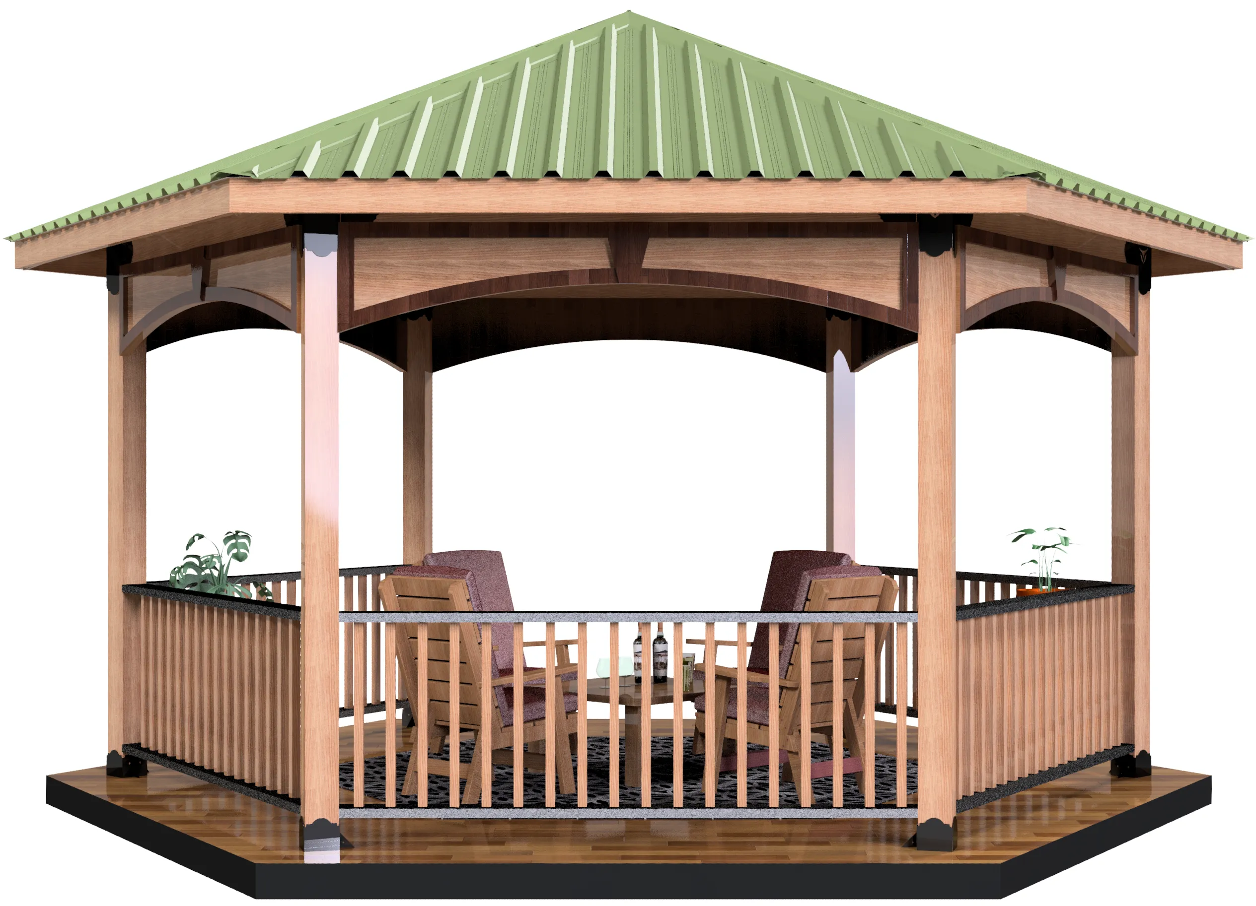 • The one and only DIY-Smart design ever created to allow DIYers to easily build a grand solid roofed hexagon outdoor living structure easily, fast, and for 1/4 the cost of contracted labor.