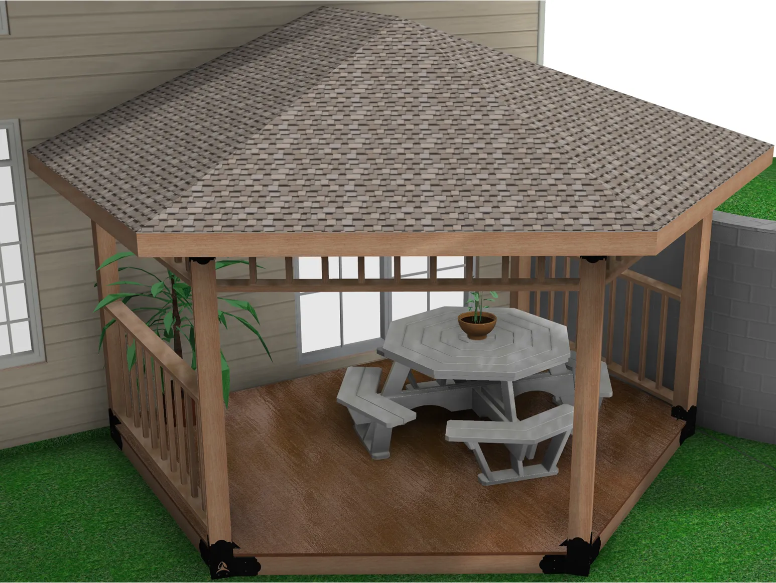 Explore Floating Deck, Solid Roofed Partial Hexagon