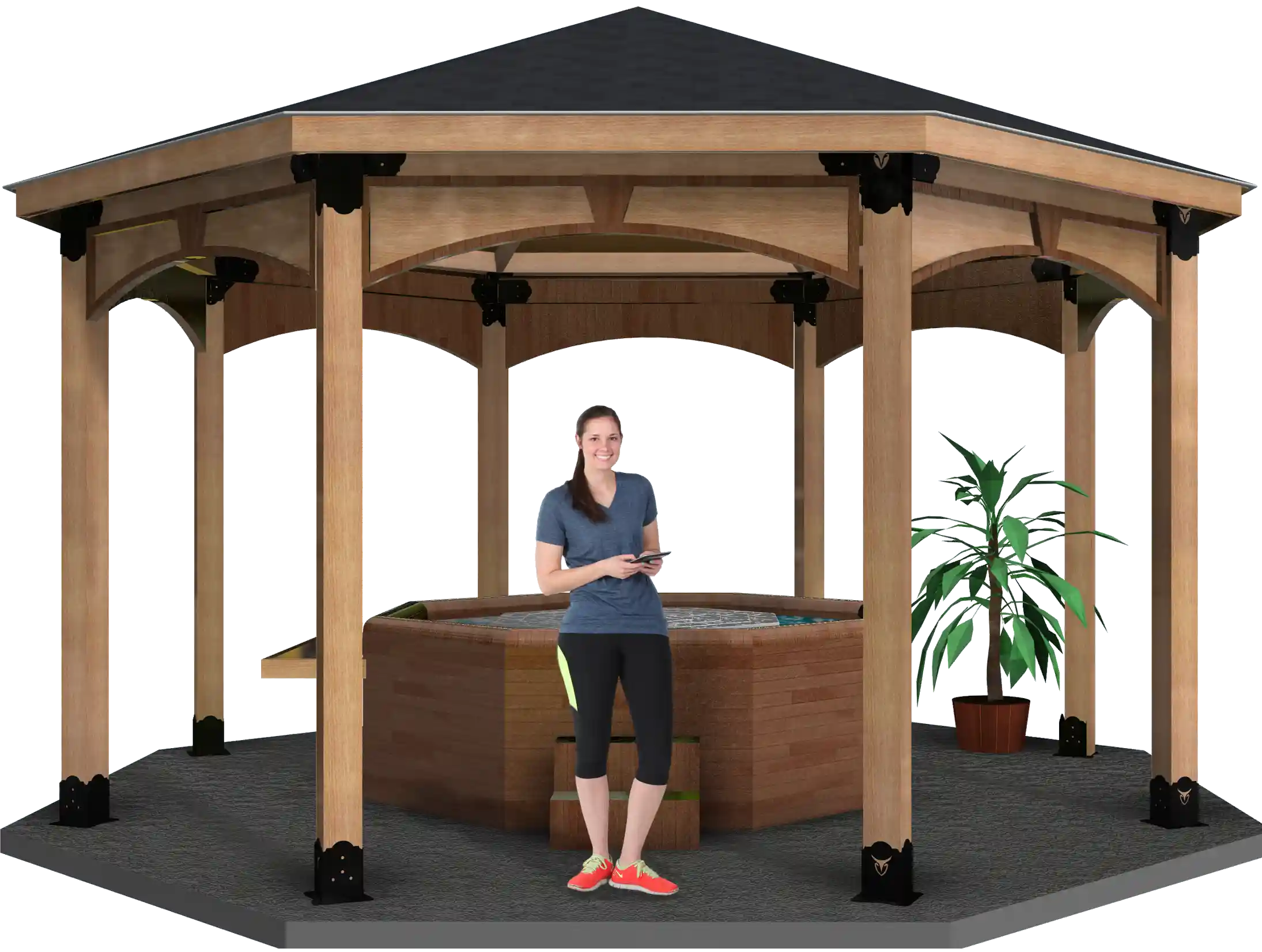 Full Octagon and Partial Octagon structures are available in freestanding configuration. Freestanding structures are available in surface mounted and floating deck anchor types.