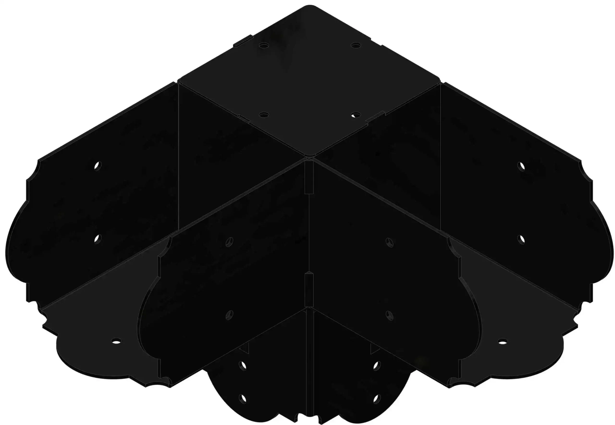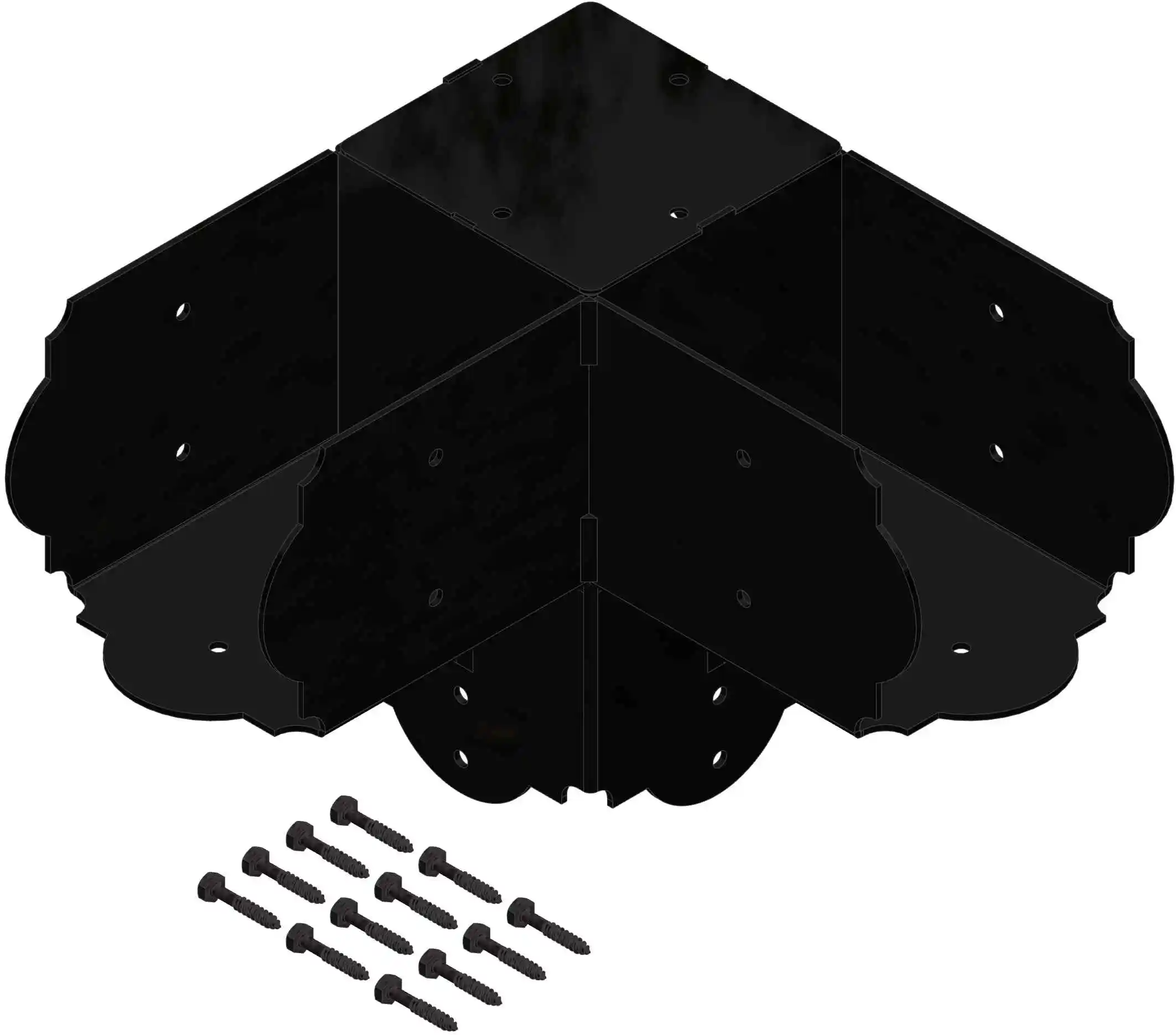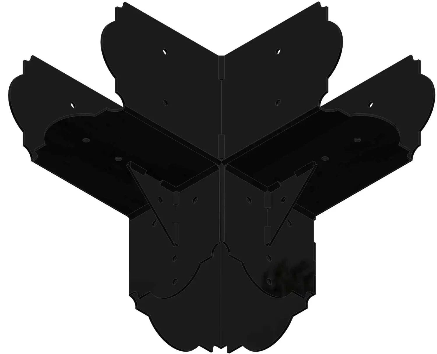 2-way 90 deg heavy duty corner bracket for 6×6 (5.5″ x 5.5″) size lumber members is designed to create a strong 3-way 90-degree joint between three 6×6 lumber members.