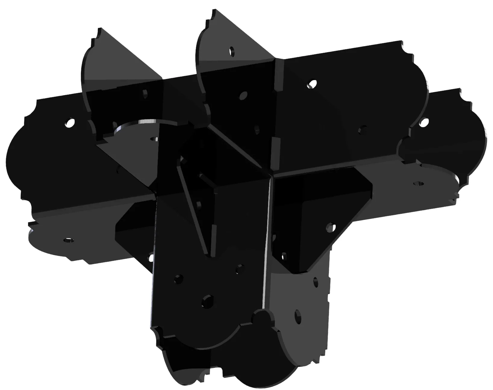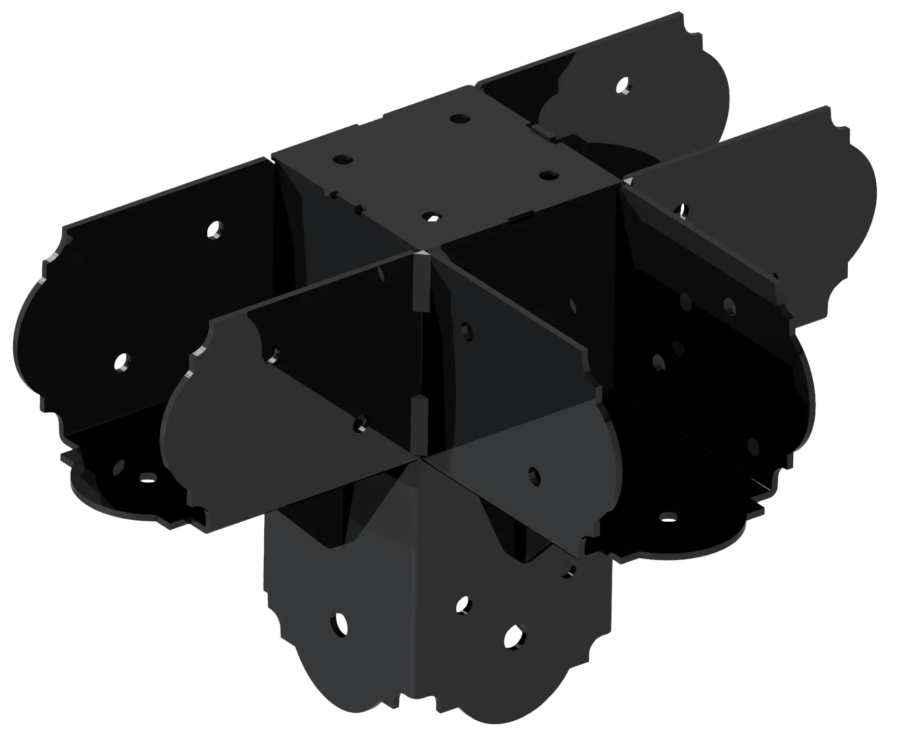 Universal 4-way 90-deg heavy duty elbow bracket for 4×4 size lumber members.
