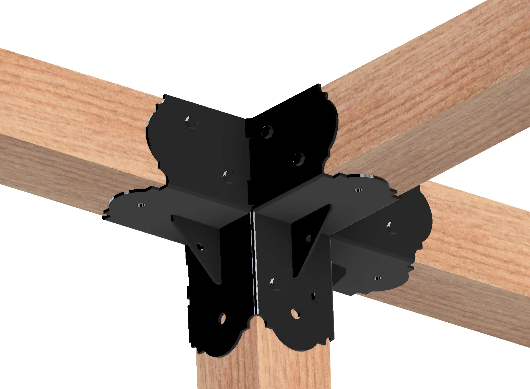 Designed to create a strong 90-degree joint between three 4×4 lumber members.