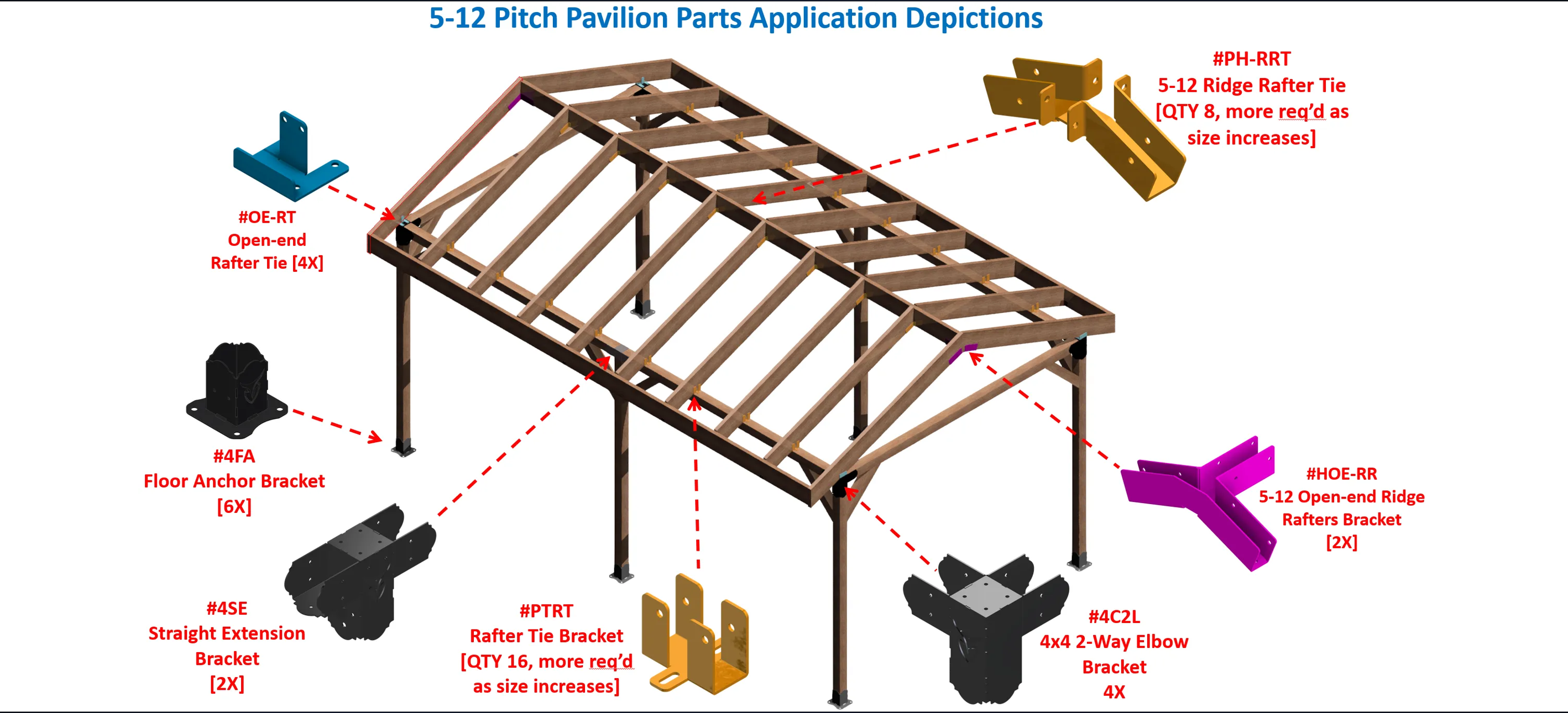 Gable Roof Brackets Kit (qty of ridge rafer bracket and rafter tie brackets vary by length of pavilion.