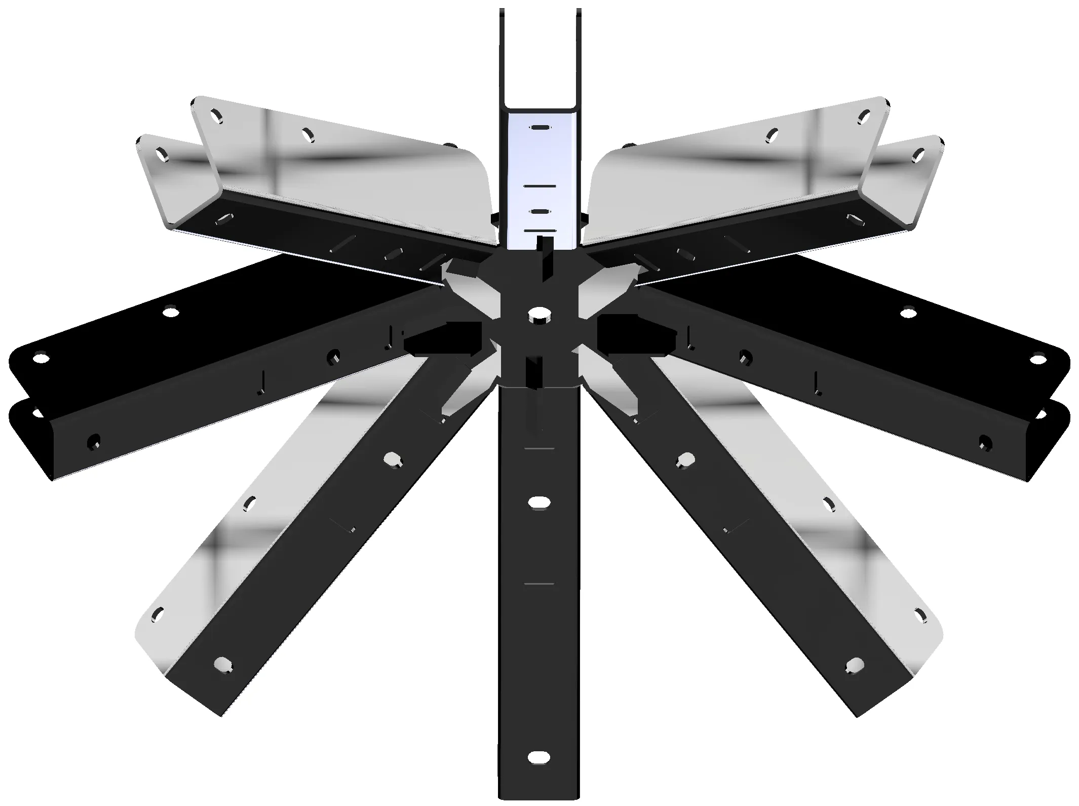 Qty 1, of 6-12 Pitched Roof Peak Octagon 8-way Spider Bracket.
