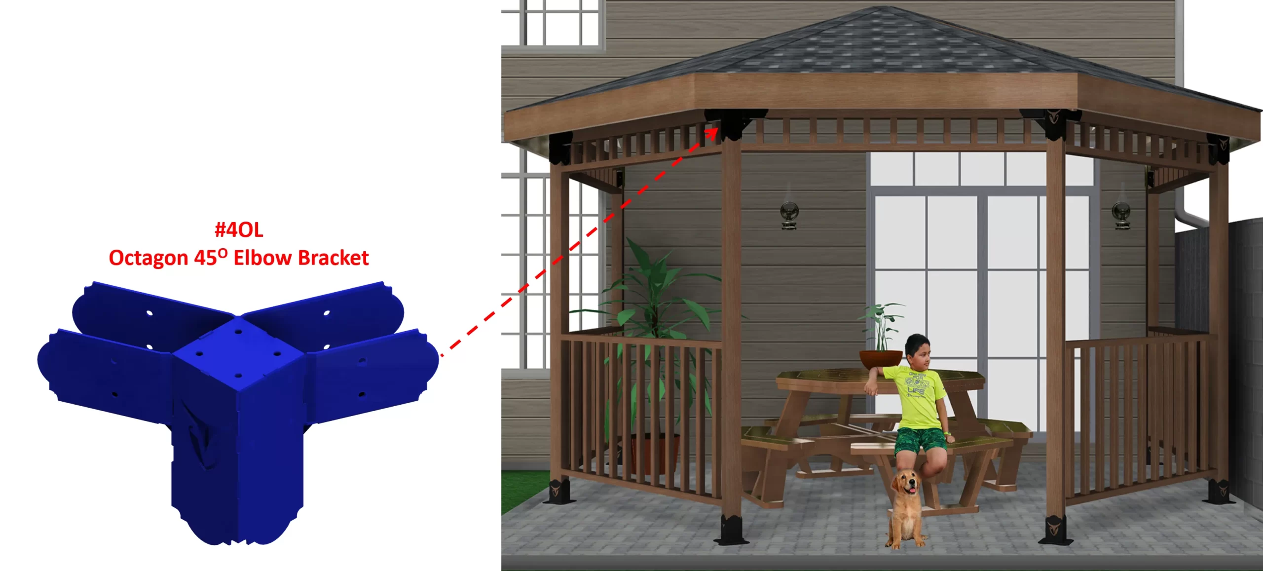 Primarily to be used to create a full octagon, linear octagon, or partial octagon shaped pergola or gazebo this bracket is made with highest quality materials and workmanship for high durability and long life.