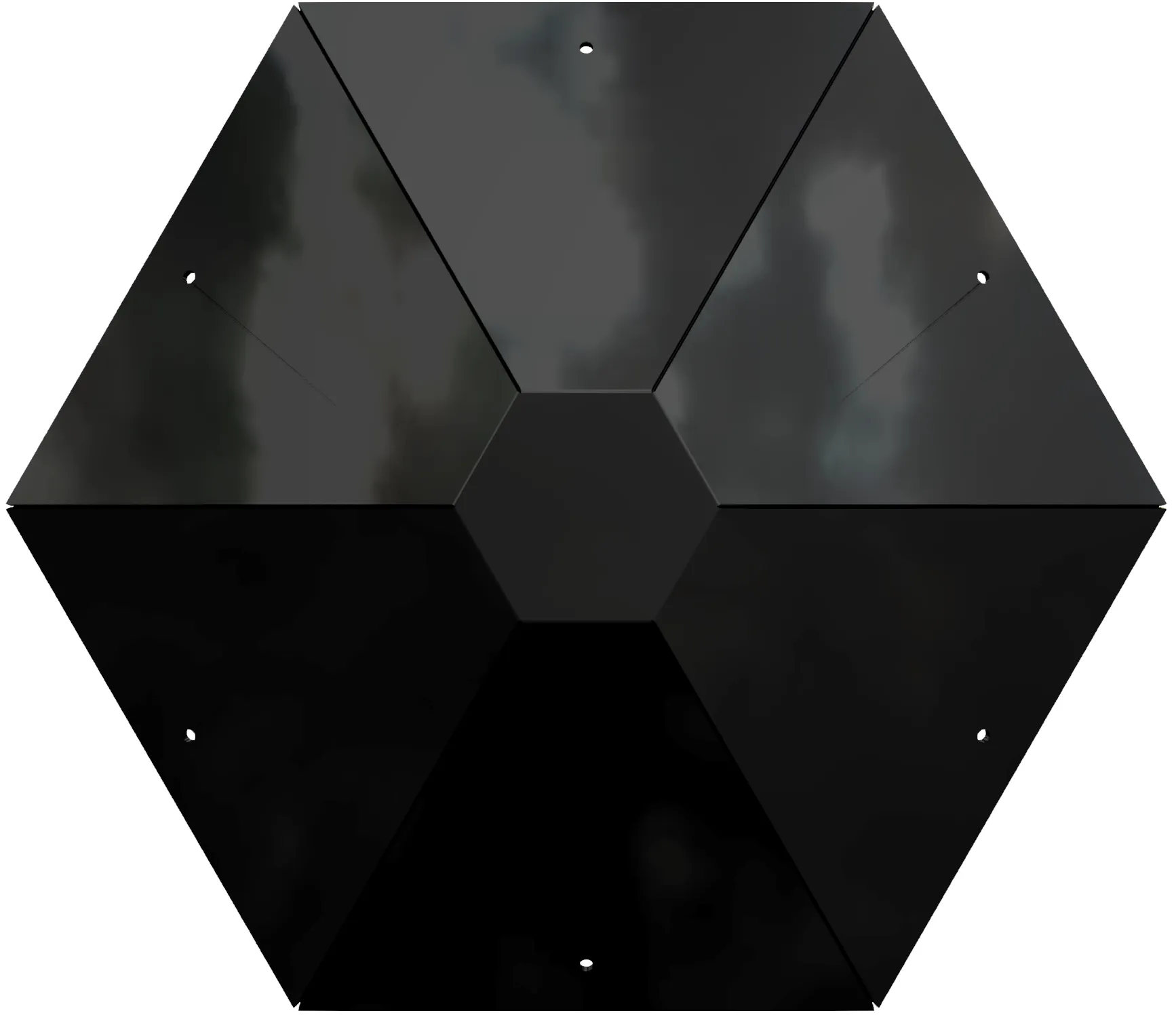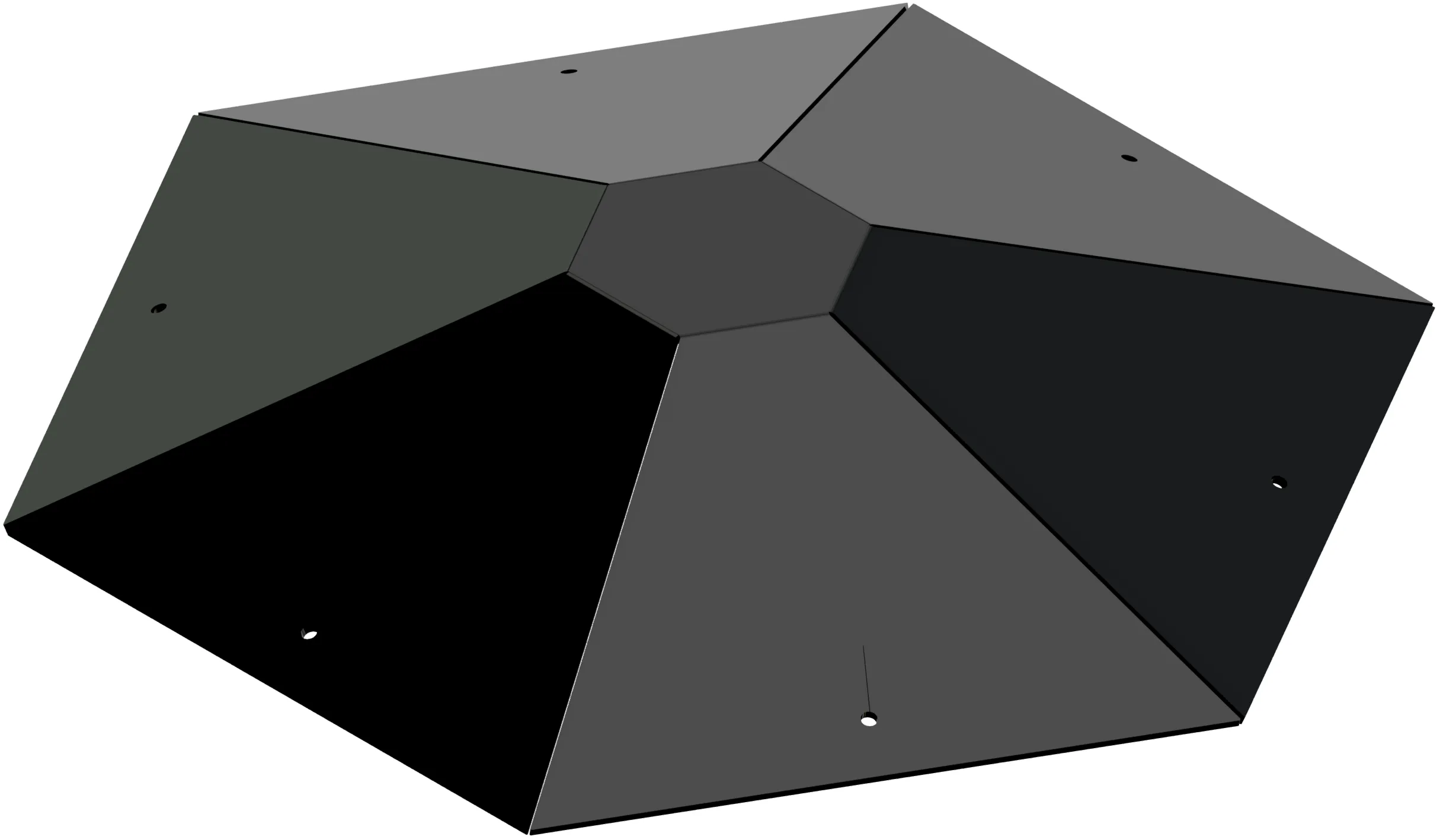 Made of heavy metal, this cap seals the peak of a hexagon gazebo whether it has shingles or standing seam metal roofing. All corner joints in this cap are tack welded and sealed with all weather butyl tape on the inner side. This cap comes painted black with black paint. It can be spray painted over with desired color to match shingles or metal panels.