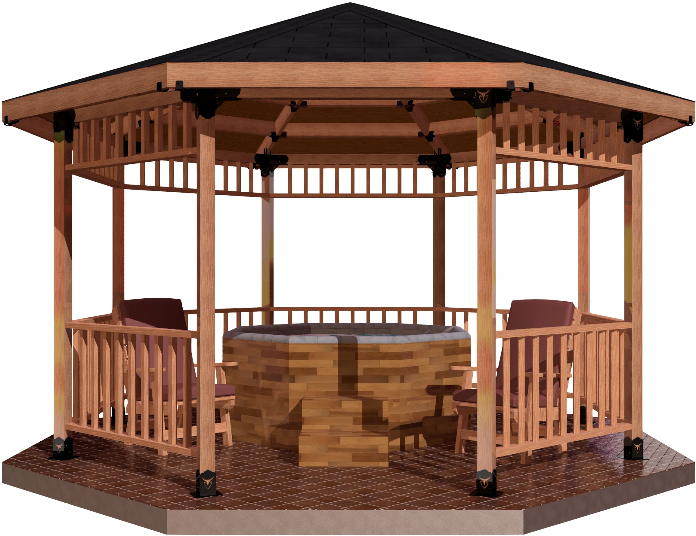 Note: This is a DIY kit. Hottub, Chairs, Lumber & Roofing Materials are not included. You acquire them locally.