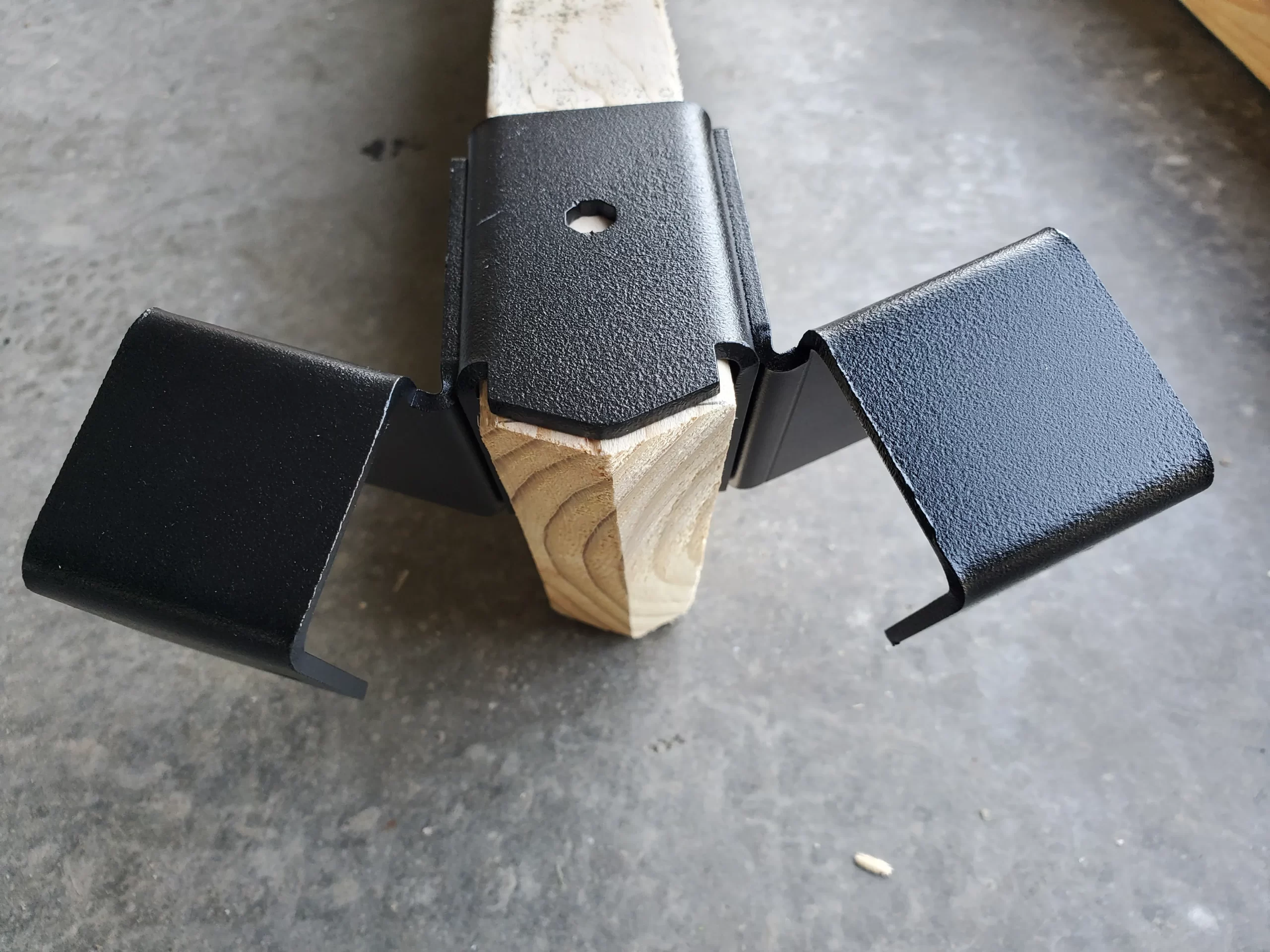 This is a clever DIY bracket designed to attach roof skirt beams to the ends of hexagon roof rafters. Use together with Hexagon Spider or Partial Hexagon Spider, Hexagon Crosstie brackets, and Post Top Rafter Tie Brackets to simplify roof construction work for DIYers and Contractors.