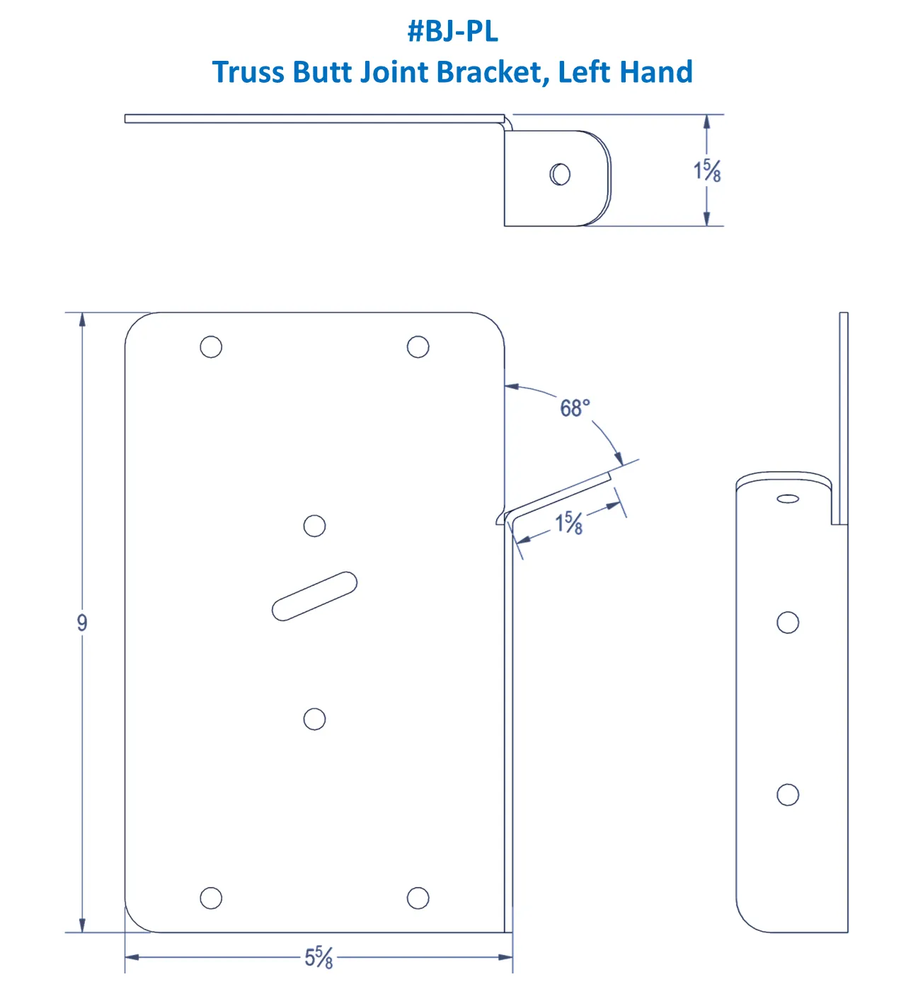 - The Truss Butt Joint Plate, RH Bracket attaches to the side face of the right hand 45-degree brace member and provides a flat face to attach to the side of the right side open-end rafter.